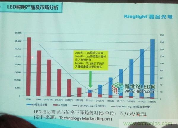 晶台光電技術總監邵鵬睿看好LED照明未來的發展,他說,2014年LED照明平均售價的下降將大幅刺激需求快速增長。而價格和可靠性是當前影響LED進入室內照明的最重要因素。