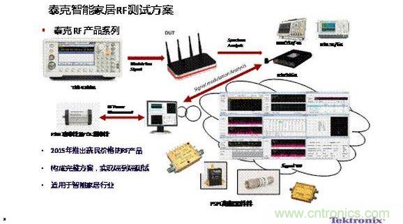 他表示,這個市場目前還沒有相關的標準可以遵循,無線連接標準也沒有,幹擾測試標準也沒有,但是,“從我們客戶的反應來看,他們對於智能家居的RF測試還是很有需求的,我們2015年將推出親民價格的智能家庭RF測試產品。”他說道。