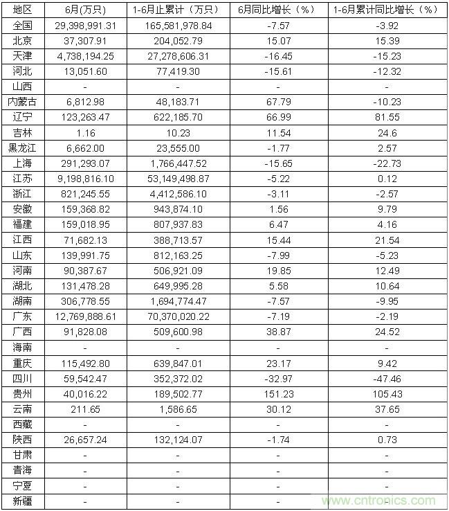 【導讀】據統計顯示,2015年1-6月止累計中國電子元件產量165,581,978.84萬隻,同比下降3.92%。2015年6月中國電子元件產量同比下降7.57%,為29,398,991.31萬隻。