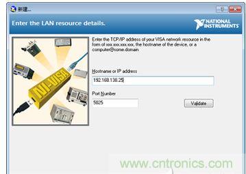 啟動Masurement & Automation Explorer軟件,選擇設備和接口,在添加網絡設備中,使用Manual Entry of Raw Scoket(手動輸入原始SOCKET)方式連接,ZDS2024示波器采用端口號5025來接收SCPI命令。如圖2和圖3所示。設置好後,可進行測試,確保連接成功。