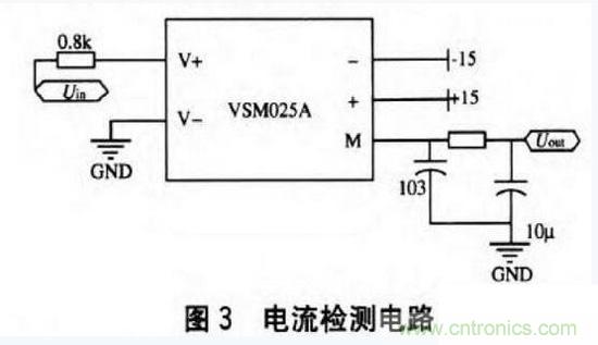 係(xi)統(tong)所(suo)要(yao)檢(jian)測(ce)的(de)信(xin)號(hao)采(cai)用(yong)霍(huo)爾(er)傳(chuan)感(gan)器(qi)法(fa)檢(jian)測(ce),如(ru)被(bei)測(ce)電(dian)源(yuan)設(she)備(bei)向(xiang)該(gai)簡(jian)易(yi)直(zhi)流(liu)電(dian)子(zi)負(fu)載(zai)輸(shu)入(ru)的(de)電(dian)壓(ya),以(yi)及(ji)流(liu)進(jin)負(fu)載(zai)的(de)電(dian)流(liu)。電(dian)壓(ya)和(he)電(dian)流(liu)檢(jian)測(ce)分(fen)別(bie)通(tong)過(guo)電(dian)壓(ya)霍(huo)爾(er)、電(dian)流(liu)霍(huo)爾(er)傳(chuan)感(gan)器(qi)檢(jian)測(ce),並(bing)經(jing)過(guo)必(bi)要(yao)的(de)輸(shu)出(chu)轉(zhuan)換(huan)電(dian)路(lu)後(hou)轉(zhuan)換(huan)為(wei)檢(jian)測(ce)信(xin)號(hao)。為(wei)了(le)提(ti)高(gao)係(xi)統(tong)的(de)抗(kang)幹(gan)擾(rao)性(xing),檢(jian)測(ce)信(xin)號(hao)經(jing)過(guo)一(yi)個(ge)低(di)通(tong)濾(lv)波(bo)器(qi)濾(lv)除(chu)噪(zao)聲(sheng),再(zai)送(song)入(ru)單(dan)片(pian)機(ji)的(de)AD轉換器中。其中電流霍爾的原理圖如3所示。