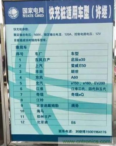 圖2.國家電網充電樁適用車型告示牌