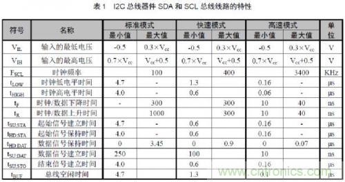 l總線電平:即輸入電壓Vcc,一般的I2C輸入電壓為3.30V,若為其他輸入電壓值也可通過旋鈕A對其進行調節。總線電平Vcc的調節將會影響VIL和VIH 的值,Vcc與VIL 、VIH存在如表2所示的關係。