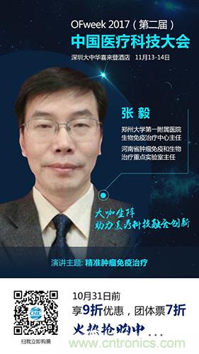 張毅教授將在OFweek 2017(第二屆)中國醫療科技大會現場分享自己的主題演講《精準腫瘤免疫治療》。