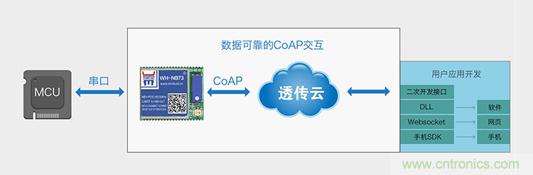 基於雲服務的CoAP協議傳輸的特征是數據可靠,簡單易用。通過連接有人透傳雲實現交互,透傳雲會提供二次開發接口,供終端應用開發。