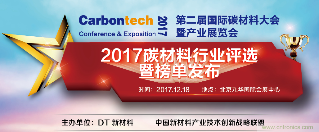 由DT新材料發起的“2017碳材料行業百強評選”已於2017年9月份正式啟動,本屆評選活動聯合百餘家知名戰略合作媒體共同舉辦,特邀國際學術專家、企業精英、投資人、政府人員和媒體從業者等十餘位組成專家評審委員會,為碳材料行業最具代表性、專業性和影響力的評選活動。