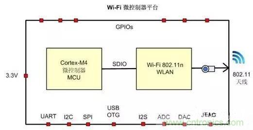 微控製器是家居智能化的關鍵部件。MCU和Wi-Fi是最基本的兩個元素。以某一Wi-Fi微控製器為例,它是內置全功能微控製器的單芯片SoC,支持802.11n Wi-Fi。