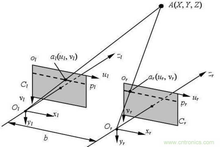 雙目視覺的基本原理是利用兩個平行的攝像頭進行拍攝,然後根據兩幅圖像之間的差異(視差),利用一係列複雜的算法計算出特定點的距離,當數據足夠時還能生成深度圖。
