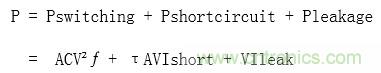 要想實現低功耗,就必須了解電路中功耗的來源[1]。對於CMOS電路功耗主要分為三部分,分別是:電路在對負載電容充電放電引起的跳變功耗;由CMOS晶體管在跳變過程中,短暫的電源和地導通帶來的短路功耗;以及由漏電流引起的漏電功耗。其中跳變功耗和短路功耗為動態功耗,漏電功耗為靜態功耗。以下是SoC(即CPU)功耗分析的經典公式: