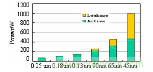 圖:不同工藝下動態功耗和靜態功耗對比圖