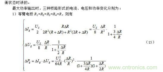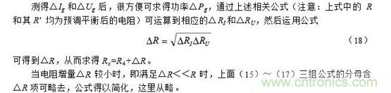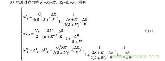 注意:上麵(7)~(9)式中的R和其R′ 均為預調平衡後的電阻。此外,當電阻增量△R較小時,即滿足△R《《R時,上麵(7)~(9)三式的分母中含△R項可略去,公式可得以簡化,這裏從略。