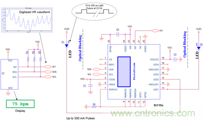 圖3. 一個隻需要外部LED的集成化心率傳感器