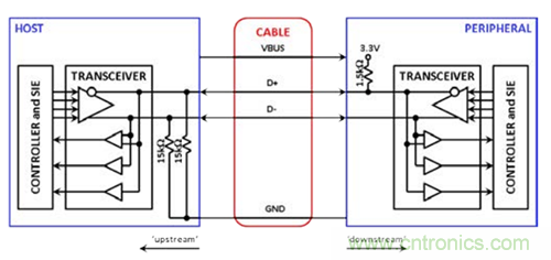 2. 它必須管理USB電dian纜lan上shang的de雙shuang向xiang通tong信xin,確que保bao其qi收shou發fa器qi在zai適shi當dang的de時shi候hou進jin行xing發fa送song和he接jie收shou,並bing精jing確que重zhong現xian所suo有you驅qu動dong和he空kong閑xian狀zhuang態tai。若ruo要yao精jing確que重zhong現xian空kong閑xian狀zhuang態tai,它ta必bi須xu在zai其qi上shang遊you側ce配pei置zhi上shang拉la電dian阻zu,以yi模mo擬ni連lian接jie下xia遊you外wai設she的de上shang拉la電dian阻zu狀zhuang態tai。它ta在zai下xia遊you側ce也ye需xu配pei置zhi下xia拉la電dian阻zu。必bi須xu監jian控kong總zong線xian上shang表biao示shi總zong線xian空kong閑xian、分組開始和分組結束的信號,以便正確響應這些狀況。