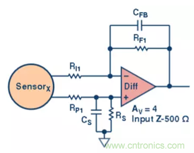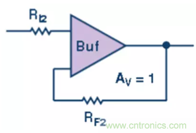 第三級,將結果形成的通道信號施加到單位增益緩衝級放大器 (圖4)。使用電阻是為了減少輸入偏置電流不平衡。