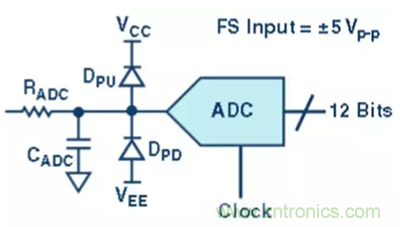 電容提供了一個簡單的低通抗混疊濾波器 (AAF),用以衰減目標頻帶之外的信號和噪聲。AAF deshejizaihendachengdushangqujueyuxitongdeshejiheyingyong。zuihou,shanglahexialaerjiguankezengtianshurubaohugongneng,kefangzhiyoukenengbeishijiadaozhuanhuanqishuruduandejiduanguozaixinhaodaozhiderenheguzhangzhuangkuang。
