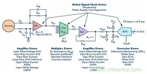 為(wei)節(jie)省(sheng)篇(pian)幅(fu),我(wo)們(men)在(zai)這(zhe)裏(li)不(bu)會(hui)詳(xiang)細(xi)討(tao)論(lun)這(zhe)些(xie)誤(wu)差(cha)是(shi)如(ru)何(he)在(zai)有(you)源(yuan)器(qi)件(jian)內(nei)部(bu)產(chan)生(sheng)的(de)。所(suo)有(you)這(zhe)些(xie)誤(wu)差(cha)均(jun)在(zai)大(da)量(liang)論(lun)文(wen)和(he)文(wen)章(zhang)中(zhong)有(you)明(ming)確(que)的(de)定(ding)義(yi)和(he)詳(xiang)細(xi)的(de)描(miao)述(shu)。在(zai)此(ci)需(xu)要(yao)注(zhu)意(yi)的(de)是(shi),必(bi)須(xu)考(kao)慮(lv)所(suo)有(you)這(zhe)些(xie)基(ji)本(ben)誤(wu)差(cha),確(que)保(bao)分(fen)析(xi)確(que)實(shi)可(ke)靠(kao),能(neng)達(da)到(dao)係(xi)統(tong)精(jing)度(du)目(mu)標(biao)規(gui)格(ge)的(de)要(yao)求(qiu)。
