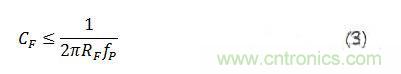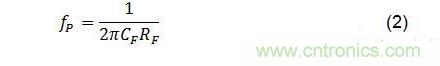 高於該極點頻率,電路的放大率便會降低。最大反饋電容器值可由反饋電阻器和所需帶寬確定:
