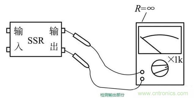 斷開固態繼電器輸入端的工作電壓後,其輸出端兩引腳之間應截止,萬用表表針指示為無窮大。