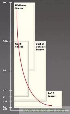 有些令人驚訝的是,一些在“普通”溫度下的常用傳感器甚至可以在較寬的個位數區間內工作(圖1),其中包括RTD(使用鉑或銠鐵)、鍺,甚至經典的碳基電阻器。然而,這些裝置的強磁場會引起幾K的傳感器誤差。研究現狀是,對低K傳感的需求非常大,以至於這些傳感器是許多供應商提供的標準目錄產品(想一想,這是相當驚人的)。