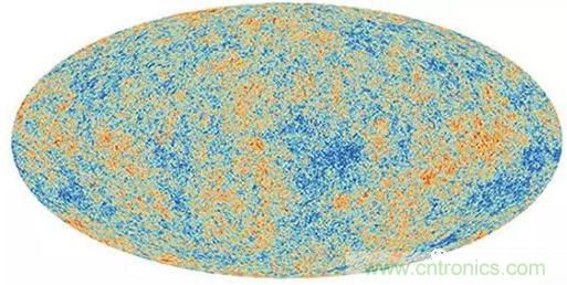 圖2:2013年歐洲航天局的普朗克衛星拍攝到的宇宙微波背景輻射圖,該圖顯示了天空中的微小變化。(圖片來源:ESA/Planck Collaboration,通過Space.com網站)