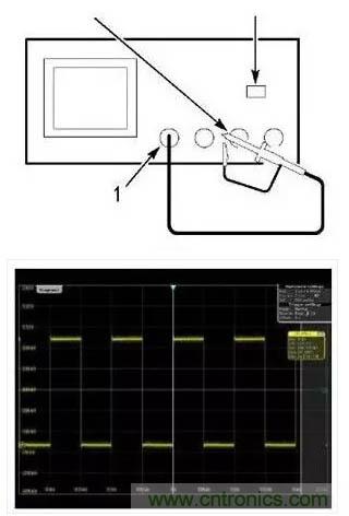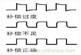 3.如果波形不正確,請調整探頭。如下圖三所示,直至波形為上麵的補償正確波形。