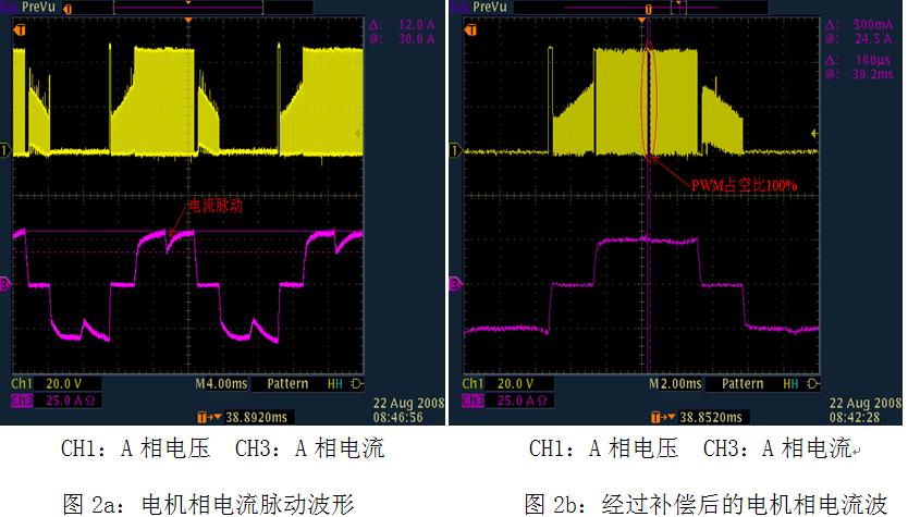 圖2b是采用XC866控製芯片的係統在經過上述方法優化後測得的換相電流波形,由圖2b可ke以yi看kan出chu,換huan相xiang時shi的de電dian流liu脈mai動dong基ji本ben消xiao除chu,電dian機ji的de相xiang電dian流liu基ji本ben接jie近jin方fang波bo。用yong了le這zhe套tao控kong製zhi係xi統tong的de電dian動dong車che,起qi步bu加jia速su以yi及ji運yun行xing時shi的de電dian機ji震zhen動dong已yi基ji本ben消xiao除chu,實shi現xian了le超chao靜jing音yin控kong製zhi器qi的de設she計ji。