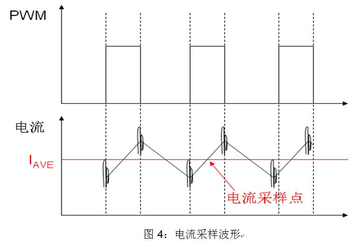 2) 能夠在PWM的開通期間特定時刻觸發A/D采樣;因為在PWM逆變器帶感性負載的控製係統中,由於係統的一些寄生參數導致PWM在開通和關斷期間電機的相線上出現振鈴(如圖4所示),這些振鈴會耦合到A/D采樣的回路中,因此我們應避開在PWM開關過程中進行A/D采樣。如果我們在PWM開通期間的中點觸發電流采樣,我們將會得到電流的平均值,這將有利於我們對電流補償的控製。