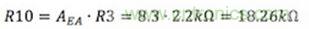 首先,將R3從3.74KΩ改變為2.2KΩ,得到想要的3.37V輸出。然後由R10和R3的比值確定誤差放大器增益。