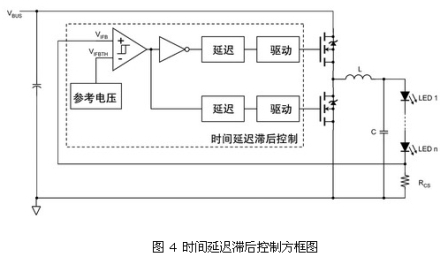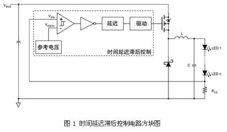 隻zhi要yao輸shu出chu電dian壓ya的de值zhi保bao持chi在zai一yi定ding範fan圍wei內nei,這zhe種zhong利li用yong控kong製zhi器qi的de延yan遲chi實shi現xian滯zhi後hou的de調tiao節jie方fang式shi就jiu可ke促cu使shi降jiang壓ya轉zhuan換huan器qi自zi行xing調tiao節jie。提ti高gao輸shu入ru輸shu出chu電dian壓ya比bi會hui加jia大da電dian流liu紋wen波bo。輸shu入ru電dian壓ya和he電dian流liu限xian製zhi的de需xu求qiu確que定ding了le占zhan空kong比bi。這zhe種zhong結jie構gou提ti供gong了le連lian續xu而er精jing確que的de電dian流liu控kong製zhi,且qie不bu受shou輸shu入ru和he高gao亮liang度duLED正向電壓波動影響。