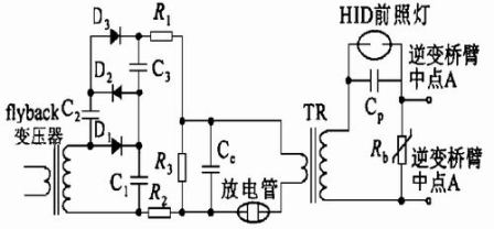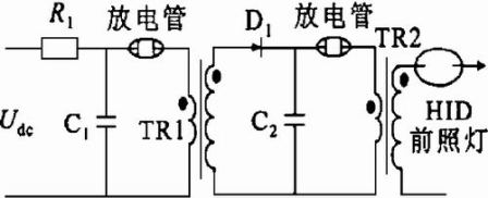 大多數電子鎮流器都由一個直流變換器將額定12V dezhiliudianyashengya,zaiyounibiandianluweidengtigongjiaoliudian,yibimiandancedianjideguodushaosun。qianjidexiaolvzhijieyingxiangdaoxitongdexiaolv,yinci,bixuhelishejishengyazhiliuhuanjie。yinweiqicheqianzhaodengyaoqiukuaisuqidongheredengdekuaisushunjianqidong。lengdengqidongsuoxudeqidongdianyayibandayu13 kV ,熄滅後重新啟動的燈所需的啟動電壓需高達23 kV 。因此HID 前照燈啟動電路的輸出電壓應有足夠的幅值和寬度,且電壓範圍要寬。