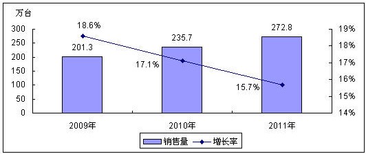 圖1 2009-2011年中國數碼攝像機銷售量預測