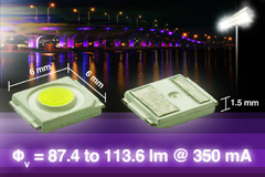 Vishay的新型LED為通用照明、消費類產品和其他需要高光通量的通用應用進行了優化,可以替代傳統的白熾燈。典型的終端產品將包括街道照明、建築照明、通用照明,以及日間行駛燈、車內照明、霧燈和車門未管警告燈等汽車應用。