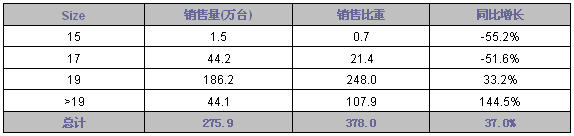 - 大於19LCD銷量同比增長為144.5%
