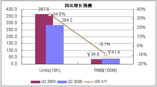 2009年第二季度,由於市場淡季來臨,需求動力不足。賽迪顧問預測,第二季度市場銷量為367.5萬台。