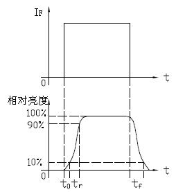 1.響應時間從使用角度來看,就是LED點亮與熄滅所延遲的時間,即圖3中tr 、tf 。圖中t0 值很小,可忽略。