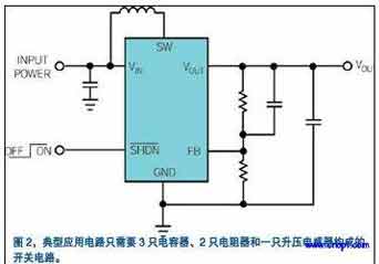 LinearTechnology公司推出的LTC3459是解決這些應用問題的一係列升壓轉換器中的一個例子。LTC3459這種器件有一種突發模式,用以在輕載電流下保持轉換器的效率。它還具有浪湧電流限製、短路保護和關機期間負載隔離等功能。盡管具有這些功能,但典型的應用電路隻要求在開關電路中有三隻電容器、兩隻電阻器和一個升壓電感器(圖2)。Wells說,因為“轉換器工作時的峰值電流小約75mA,所以一個0805小型電感器……能輕易達到與一個集成電荷泵相同的占用電路板麵積。”
