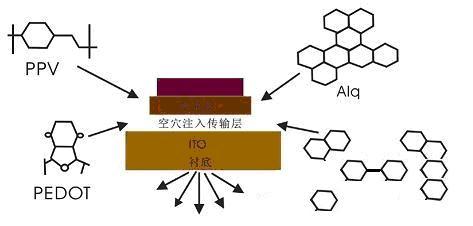 對高分子有機EL的研究工作比對小分子有機EL的研究,起步要晚得多。直到1990年,才由Burroughes及其合作者研究成功第一個高分子有機EL器件。此後,為了發展聚合物EL技術,在美國和歐洲進行了大量的研究工作。人們一般都隊為,聚合物材料比有機小分子材料要穩定,這也就成了發展聚合物EL的原動力。