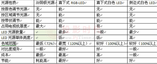 LED光源的應用對於液晶電視將帶來革命性的變化,不論是那一種技術類型都會意味著畫質更漂亮、厚度更輕薄和更節能的顯著市場優勢的形成,同時三項技術方案都會以增加產品成本為代價。不過在上述的主要改變中,三大LED技術的影響程度卻存在顯著的不同。