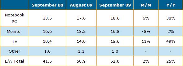 Source: DisplaySearch October 2009 Monthly TFT LCD Shipment Database