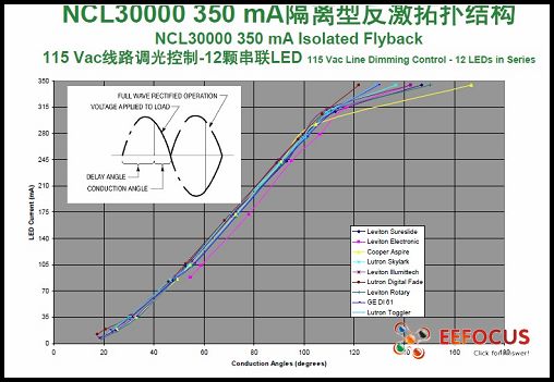 在現場,Laurent Jenck 展示了兩款從零售商店購得的鹵素台燈(采用35 W燈泡)。一款采用原鹵素燈,另外一款則采用了安森美NCP1014芯片進行穩壓改進。原鹵素燈在120 Vac條件下的輸入功率為41.7 W,在0.5米距離處測得的光亮度為744流明。采用了自供電單片式開關穩壓器的台燈在120 Vac條件下輸入功率為10.9 W,即能耗僅相當於鹵素燈的1/4;同時,這LED台燈在同等距離條件下測得的光亮度為795流明,更優於鹵素燈,其72.9流明/瓦(lm/W)的能效(efficacy)更是數倍於鹵素燈(17.8 lm/W)。
