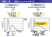 此次夏普上市的LED為兩大類共9款產品。其中一類產品與該公司“LED AQUOS”液晶電視中使用的高功率LED相同。轉用於照明用途時,在底板上配備多個LED芯片,並在其上使用混有熒光體的密封材料和透明密封材料進行了雙重密封,提高了光導出效率。輸入功率為0.5W時實現了38lm。顯色指數(Ra)為85。另一類產品在底板上配備幾十個輸出功率比較低的LED芯片,並設置了布線端子。該公司原產品的尺寸為18mm×18mm×2mm,而此次減至15mm×12mm×1.6mm。這樣,不僅支持E26燈頭,還支持E17燈頭。輸入功率為6.7W時,光束為410lm,顯色指數(Ra)為87。兩類LED為提高顯示性,均采用了綠色和紅色的熒光體。原來的白色LED多使用黃色熒光體。另外,該公司不僅銷售照明用LED,還提供封裝底板、電源IC、外殼、燈頭等LED照明相關部件,可根據客戶要求製成模塊,提供LED照明係統解決方案。