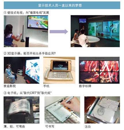 - 顯示器領域的三個夢想:壁掛式電視、3D顯示器及電子紙
