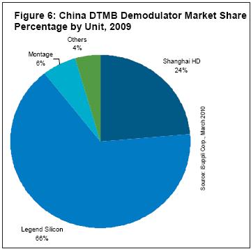 圖6所示為2009年各廠商在中國DTMB解調器市場的占有率。