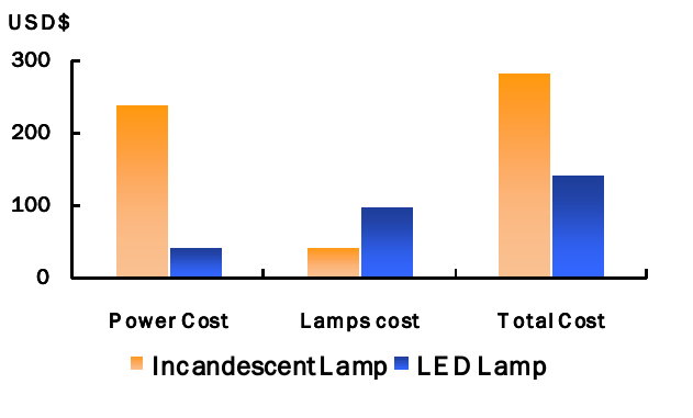 以7W的 LED燈泡為例,2009年初,一顆7W LED燈泡成本將近15美元到20美元,零售價格多半在50美元以上。不過隨著LED成本的降低,目前7W LED燈泡成本下降至12元美金左右。零售價格也壓低到30美元附近。而隨著LED燈泡成本下降,LED燈泡替代白熾燈泡的優勢越趨明顯。