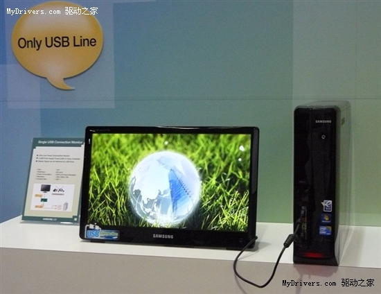 據報道,三星近日在國際信息顯示大會SID 2010上展示了一台18.5寸低功耗LED背光液晶,該顯示器可直接通過USB接口與主機相連。
