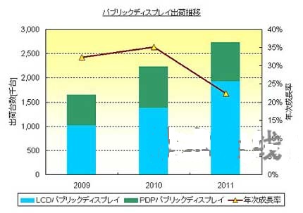 公共顯示器以數字標牌(電子看板)為代表。在機場、車站、購物中心以及商業區等公共場所顯示和發送信息的公共顯示器市場,作為繼筆記本電腦、顯示器和電視機之後的第四個大屏幕FPD市場,今後有望出現增長。