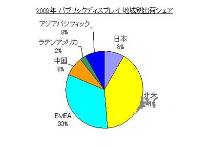 圖2:不同地區的公共顯示器供貨份額(2009年)