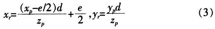 將式(2)帶入式(1)得點P在投影平麵的坐標(xr,yr):