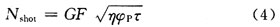 即(ji)使(shi)光(guang)強(qiang)度(du)一(yi)定(ding),由(you)於(yu)光(guang)具(ju)有(you)光(guang)子(zi)的(de)粒(li)子(zi)特(te)性(xing),一(yi)次(ci)儲(chu)存(cun)時(shi)間(jian)內(nei)入(ru)射(she)到(dao)光(guang)電(dian)二(er)極(ji)管(guan)的(de)光(guang),其(qi)每(mei)次(ci)的(de)光(guang)子(zi)數(shu)不(bu)會(hui)相(xiang)同(tong),這(zhe)樣(yang)的(de)變(bian)動(dong)特(te)性(xing)引(yin)發(fa)出(chu)了(le)光(guang)的(de)散(san)粒(li)噪(zao)聲(sheng)。光(guang)散(san)粒(li)噪(zao)聲(sheng)和(he)暗(an)電(dian)流(liu)散(san)粒(li)噪(zao)聲(sheng)一(yi)樣(yang),將(jiang)入(ru)射(she)光(guang)電(dian)二(er)極(ji)管(guan)的(de)光(guang)子(zi)數(shu)Ns的平方根當作光散粒噪聲Nn。舉例來說,假設光強使一個光電二極管內發生10000個信號電荷的條件下,發生100個光散粒噪聲,信噪比為40dB。