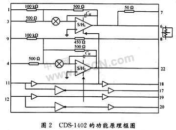 在CCD的de應ying用yong領ling域yu中zhong。相xiang關guan雙shuang采cai樣yang電dian路lu得de到dao了le廣guang泛fan的de應ying用yong。很hen多duo公gong司si專zhuan門men研yan發fa了le相xiang關guan雙shuang采cai樣yang的de集ji成cheng電dian路lu芯xin片pian。這zhe些xie專zhuan用yong芯xin片pian不bu僅jin使shi用yong方fang便bian,且qie性xing能neng也ye能neng得de到dao很hen大da的de提ti高gao。CDS1402芯片是一種典型的相關雙采樣電路芯片,它是專門為CCD成像器件研製的,用來消除複位噪聲。CDS1402進行了優化,適合用於10~14位轉換精度的數字視頻。低噪聲的CDS1402芯片也是利用對高低電平信號的采樣並相減來精確確定視屏信號的。結果在CCD輸出的浮動電容器上,那些剩餘電荷和kTC噪聲被最大限度的消除。CDS1402芯片一共有24個引腳。它包含有2個獨立的采樣保持放大器和S/H電路,每個S/H電路都有獨立的控製線,輸人和輸出管腳,有兩個管腳提供偏置調流和調壓。一般來說,CCD的輸出信號都要連接到2個S/H的輸入端,S/H1端用來采集和保持偏置信號,它的輸出值與CCD輸出信號相減,當CCD輸出偏置+視頻信號的時候,S/H2端就進入信號的采集狀態,從而獲得有用的視頻信號。